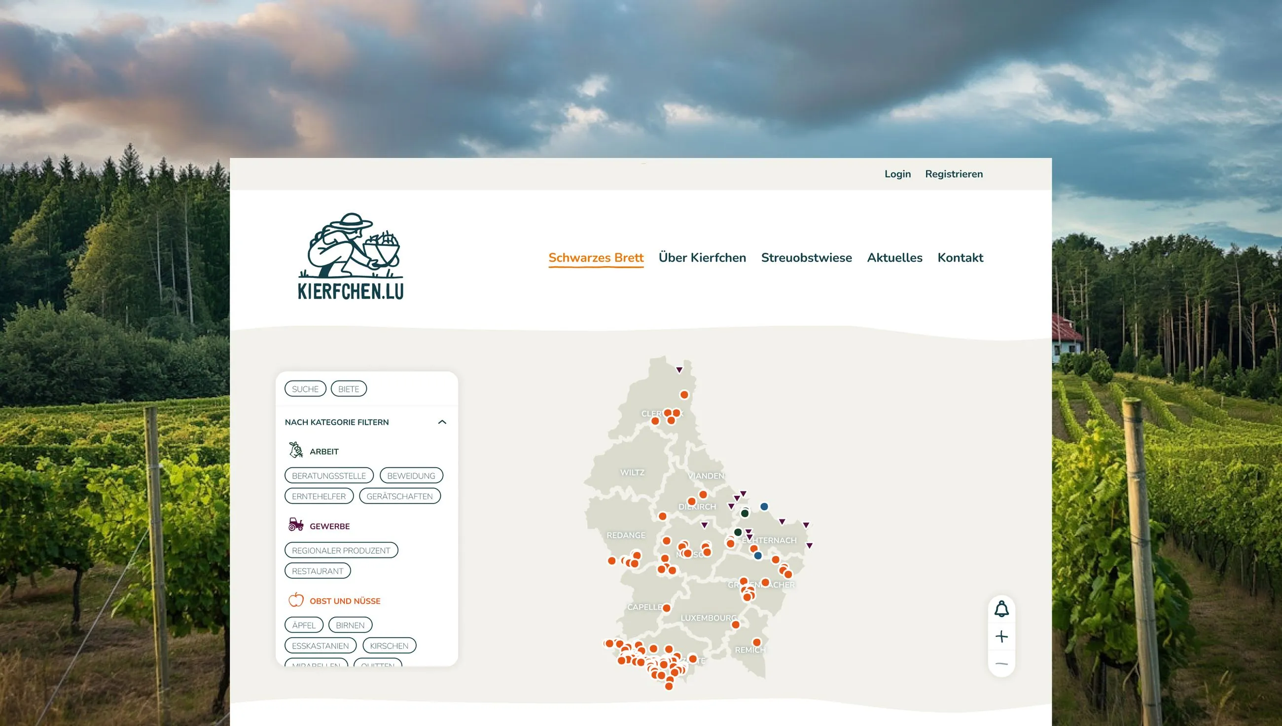 Kierfchen.lu fills the gap between local fruit producers and buyers, and it provides an online marketplace that celebrates regional abundance. The marketplace links people who can provide fruits and people who are looking for fruits.